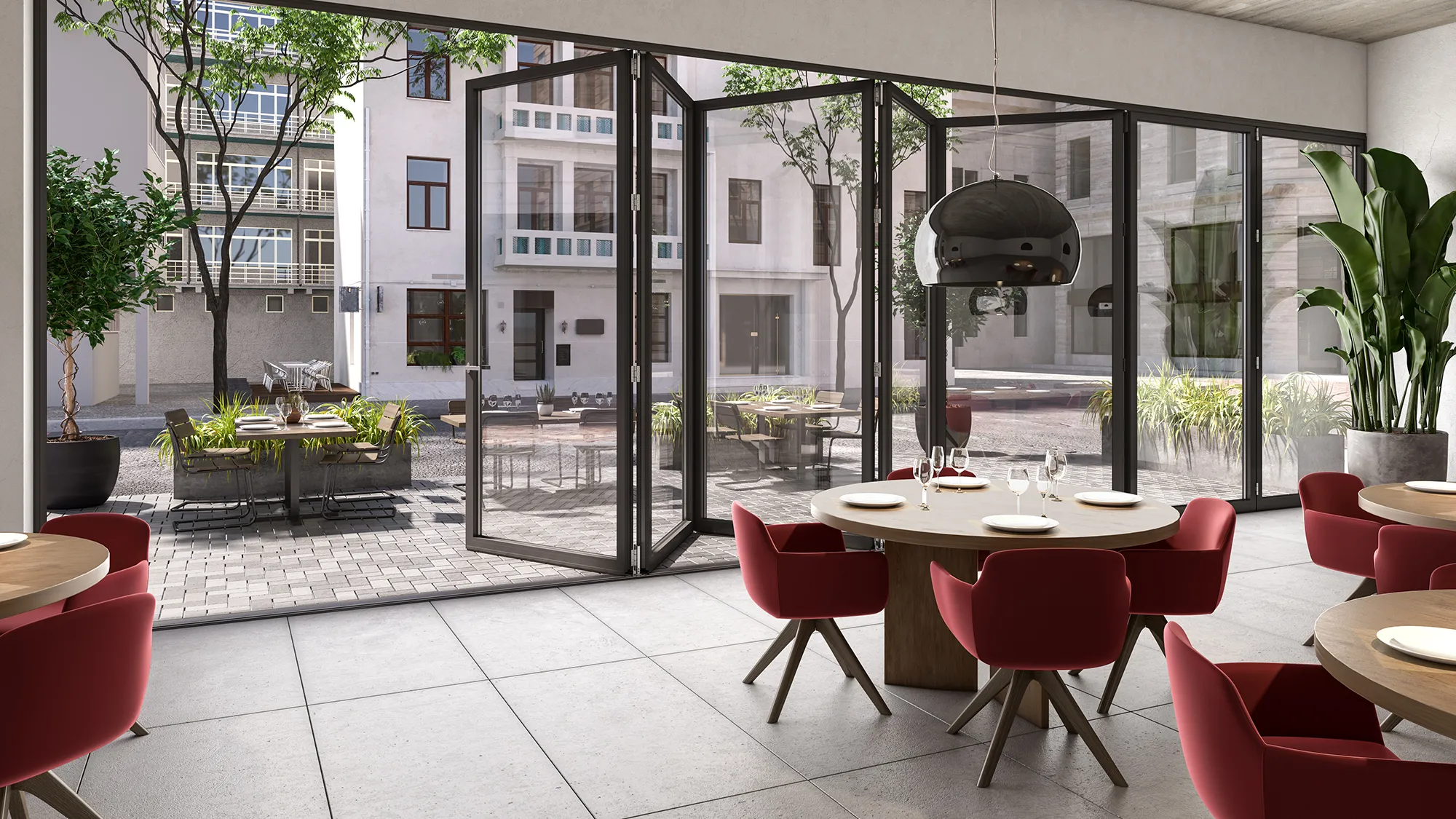 To EFD 77 Hybrid είναι το θερμομονωτικό πτυσσόμενο σύστημα που έχει σχεδιαστεί για να συνδυάζει τις ίσιες γραμμές σχεδίασης με τις εξαιρετικές επιδόσεις στεγάνωσης και θερμομόνωσης. Είναι ιδανικό σύστημα για μεγάλα ανοίγματα και παρέχει την δυνατότητα όλων των συνδυασμών, τόσο με μονά όσο και με ζυγά φύλλα, ανοιγόμενα προς τα μέσα ή και προς τα έξω. Είναι ένα σύστημα κατάλληλο για οικίες αλλά και για επαγγελματικούς χώρους (εστιατόρια, καφέ κ.τ.λ.).