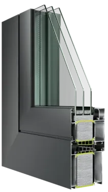 Το πρωτοποριακό σύστημα αλουμινίου με την έκδοση EOS90 PH Hybrid αποτελεί μέχρι σήμερα το βέλτιστο συνδυασμό παγκοσμίως με πλάτος πλαισίου 150mm και συντελεστή θερμομόνωσης Uw=0,75 W/m2K.