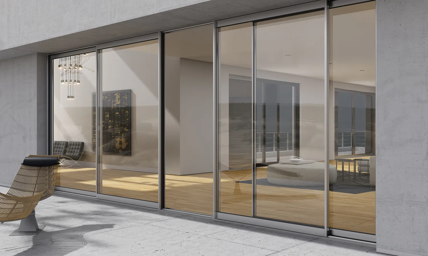 Διαθέτει οδηγούς για όλες τις πιθανές τυπολογίες συρόμενου σε 42 και 32mm ύψος, όπως επίσης και προφίλ γάντζου με εμφανή επιφάνεια μόλις 25mm. Χαρακτηριστικό που προσδίδει λιτό, minimal σχεδιασμό, ανεμπόδιστη θέα και μοναδικότητα.